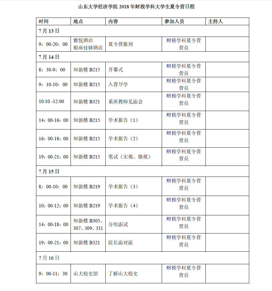 2018年财税学科夏令营日程