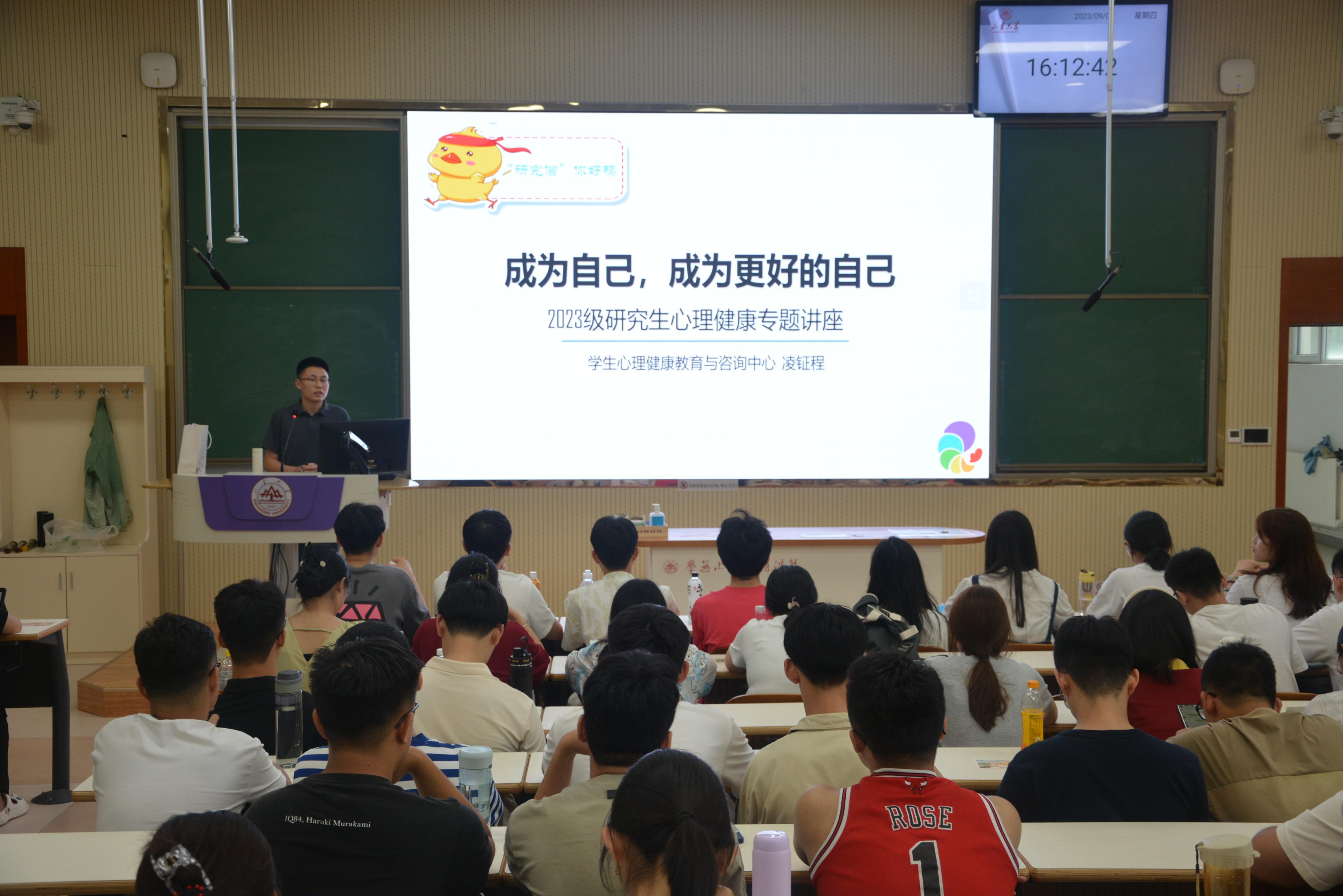 9月7日下午,beats365亚洲版官网于中心校区电教楼202举办2023级研究生新生心理健康讲座。beats365亚洲版官网心理咨询中心咨询师凌钲程为同学们带来了“成为自己,成为更好的自己”的主题讲座。