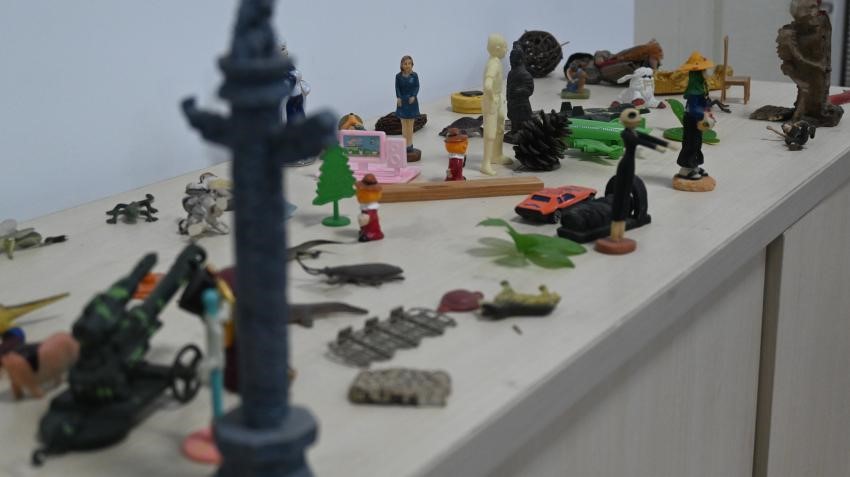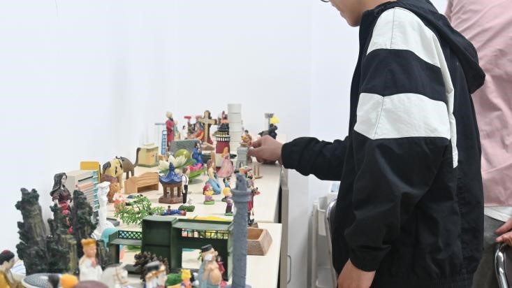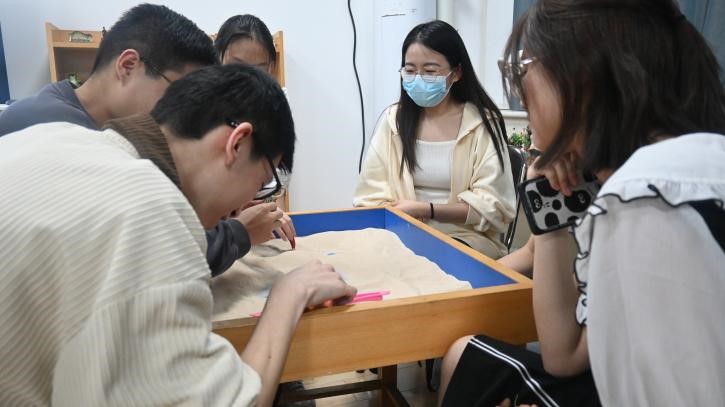 体验环节分为两个部分:感受沙具,走进自己与自我探索之旅。在第一个体验环节中,同学们首先需要在安静状态下挑选一个与“自己”相关、最能代表自己或最触动自己的沙具,深入感受沙具,与沙具对话并记下自己的想法、感受或者联想,随后以小组为单位,用挑选的沙具介绍自己,分享自己与这个沙具的故事。体验二:自我探索之旅则分为讨论沙具摆放顺序;第二轮沙具挑选;再次摆放沙具与组内分享,沙盘命名四个部分。小组成员需共同确定沙具摆放顺序,再次进行创作,依次分享自己与本次沙盘的故事,并为其共同的创作命名。