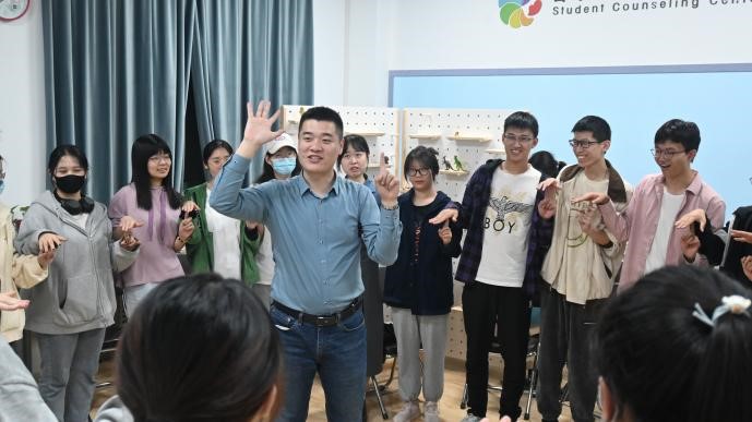 活动伊始,孙长玉老师首先向同学们介绍了什么是沙盘游戏,沙盘游戏的历史起源和发展,并在此基础上引出团体沙盘游戏的概念,深入浅出地讲解了沙盘所蕴含的心理理论知识与哲学文化思想。随后,为帮助同学们进入集中的沙盘游戏状态,尽快熟悉彼此,在孙长玉老师的带领下,同学们开始了“抓小猪”的热身活动。热身活动和团体沙盘游戏分组结束以后,同学们便在孙老师的带领下正式进入了体验环节。