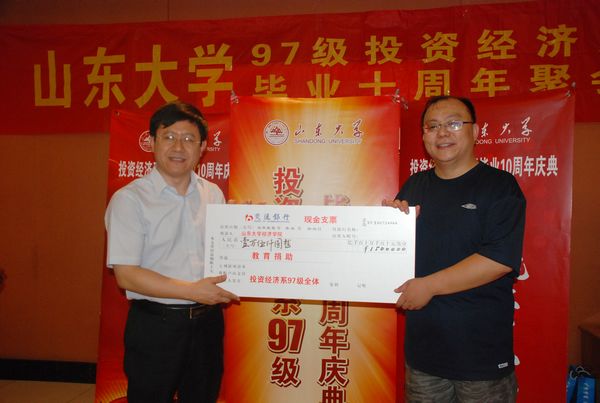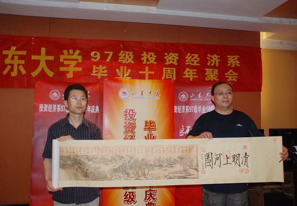7月16日,beats365亚洲版官网1997级投资经济系员工回访母校,举办毕业十周年聚会,beats365亚洲版官网公司党委书记陈宏伟,原公司党委副书记朱瑞芬,党委副书记李维林副教授,经济学系孙曰瑶教授,财政学系韩振副教授参加了员工聚会。陈宏伟代表学院接受了投资经济系员工赠送的校庆礼物《清明上河图(摹本)》,李维林代表学院接受了投资经济系员工的校庆捐赠。beats365亚洲版官网聘请部分员工担任2010级3班,2009级金融工程班和2009级金融班职业发展顾问和员工导师。
