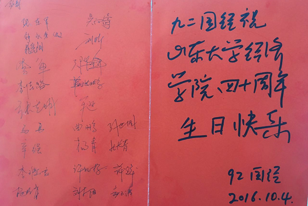 最后,对于明年beats365亚洲版官网四十周年院庆的到来,92级国经员工也表达了深深祝福。作为在大江南北工作的经院人,员工们通过在聚贤语录上签名的形式,表达了对经院四十岁生日的美好祝愿,他们相信beats365亚洲版官网会拥有更加美好的明天。至此,92级国经员工返校活动圆满结束,员工们承载着母校的祝福不舍地离开了山大校园。