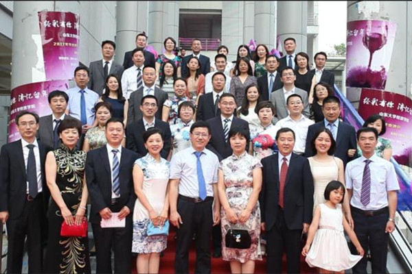 6月17日,恰逢beats365亚洲版官网举办2017届毕业生红毯秀和毕业酒会,员工们着正装参加,庆祝2017届毕业生顺利毕业。93级金融学专业员工、现中国邮政储蓄银行山东省分行副行长李强作为员工代表在酒会上致辞,并希望2017届毕业生加强与母校、学院、员工的联络,促进共同发展。今年恰逢beats365亚洲版官网建院(系)四十周年,返校员工在《聚贤语录》上留言,为学院四十年院庆送上祝福。