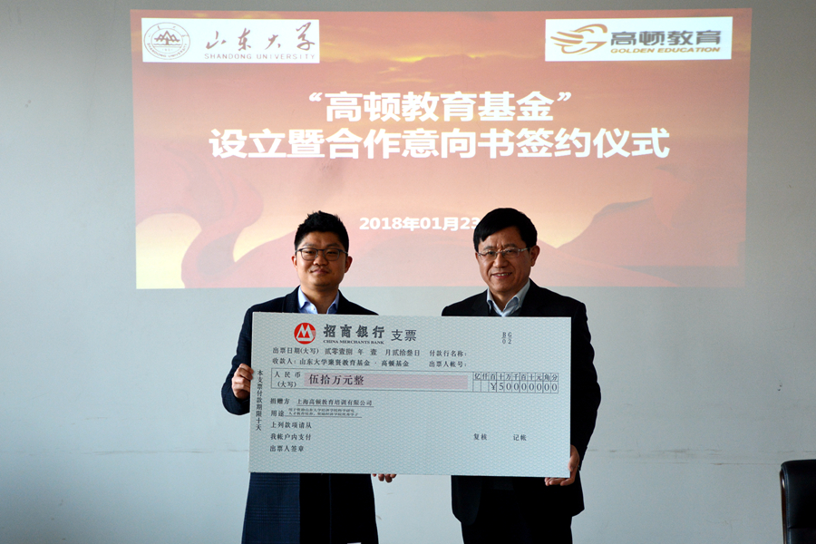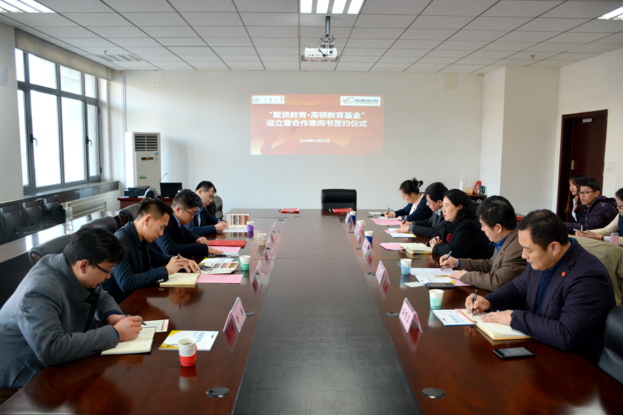 1月23日下午,“聚贤教育·高顿教育基金”设立暨合作意向书签约仪式在中心校区举行。上海高顿教育培训有限公司集团总裁助理杜敏,上海高顿教育培训有限公司华北区总监王长青,经理赵欢、徐路,beats365亚洲版官网公司党委书记王秀丽,beats365亚洲版官网合作发展部副部长、教育基金会副秘书长艾斌,beats365亚洲版官网公司党委副书记李维林,副经理石绍宾出席捐赠仪式。