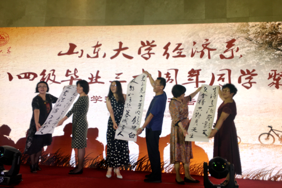 座谈会场面温馨感人,文艺节目点缀其中。师生走秀展现了员工们年轻的心态,诗朗诵《同学地图》倾诉了毕业30年聚首山大校园的激动心情,书法作品《将进酒·君不见》表达了员工们迈进新时代的豪迈之情,《明天会更好》唱出了对母校、对老师、对同窗的祝福。伴随着聚会视频,大家一起回忆了三十多年前老员工活的点点滴滴,畅谈了伴随着经济社会发展三十年的感悟与收获。回首昨天,是师生情、同窗谊,是感恩、感激;展望明天,虽不再年少,却希望依旧,是憧憬、是祝福;是一份久别重逢的喜悦,是三十年情谊积淀的迸发,是一份值得回味终生记忆。