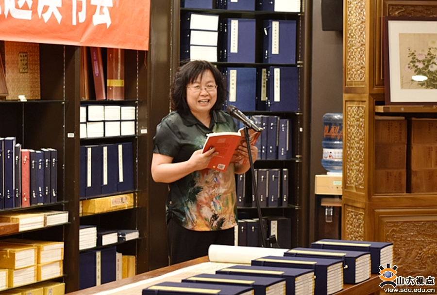 侯风云在读书会上领读书籍