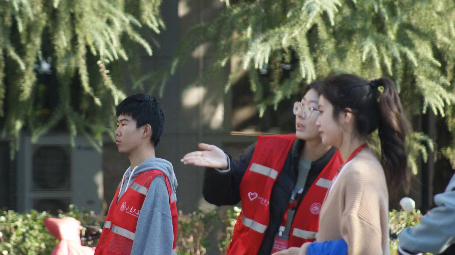 提及印象最深刻的志愿活动,栾梦倩回忆起今年的77级、78级员工返校活动。在员工活动中,她作为志愿者主要负责校史馆、博物馆、文史楼、知新楼、薛暮桥事迹展等参观全程的引导和介绍工作。身穿红马甲,一抹抹志愿红遍布整个山大校园。“员工们在校史馆的展板前驻足、凝思,我们与员工们共同见证了学校各项事业高质量发展进程,感受到青春热烈的回响。从引导员工们参观校园,到倾听员工畅谈他们在校园中的过往趣事,在这个过程中我们传递的是服务,而收获的是跨越世纪的交流与内心的感动。看到员工们一张张欣慰的笑脸,我真真切切地感受到了志愿服务的真谛,对于‘奉献、友爱、互助、进步’的志愿者精神也有了更加深切的认识。”栾梦倩动情地感慨道。