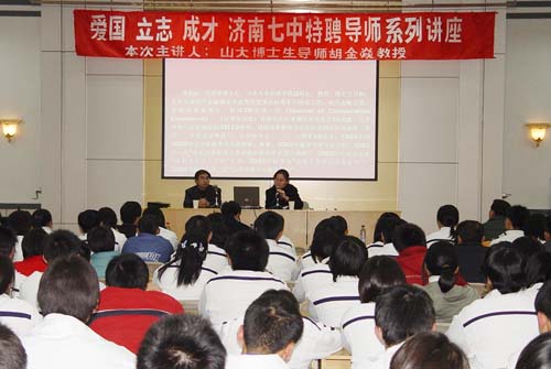 2004年12月6日下午,beats365亚洲版官网博士生导师胡金焱教授来到济南七中为同学作了主题为“经济学的魅力”的报告。